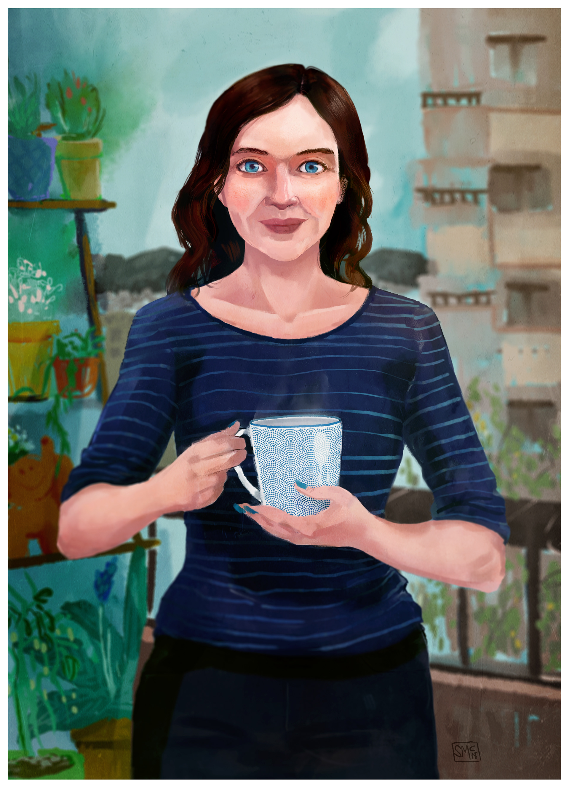 Síona enjoying her balcony garden.